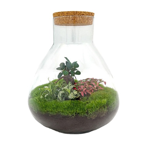 Het is een mini-glazen landschapsbedekking met kurkbodem, geschikt voor decoratie in huis en openbare ruimte.